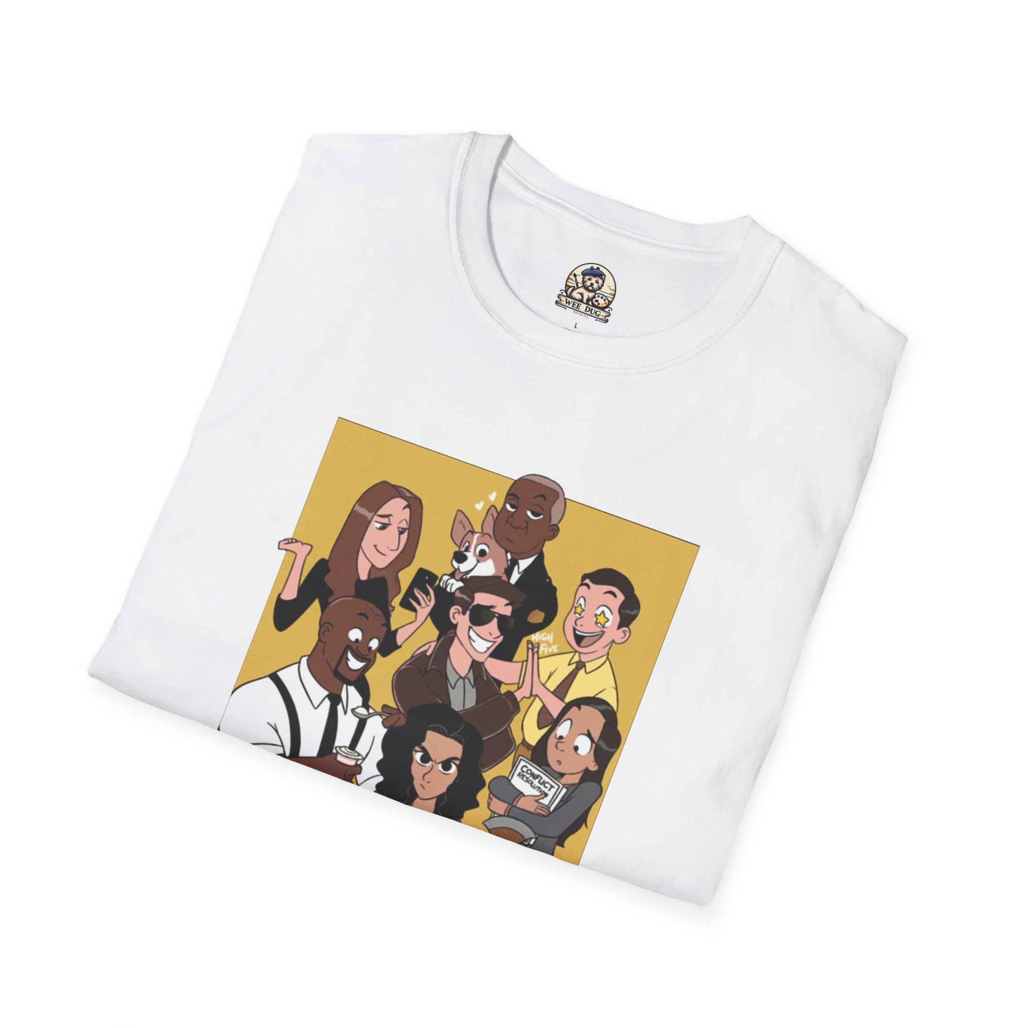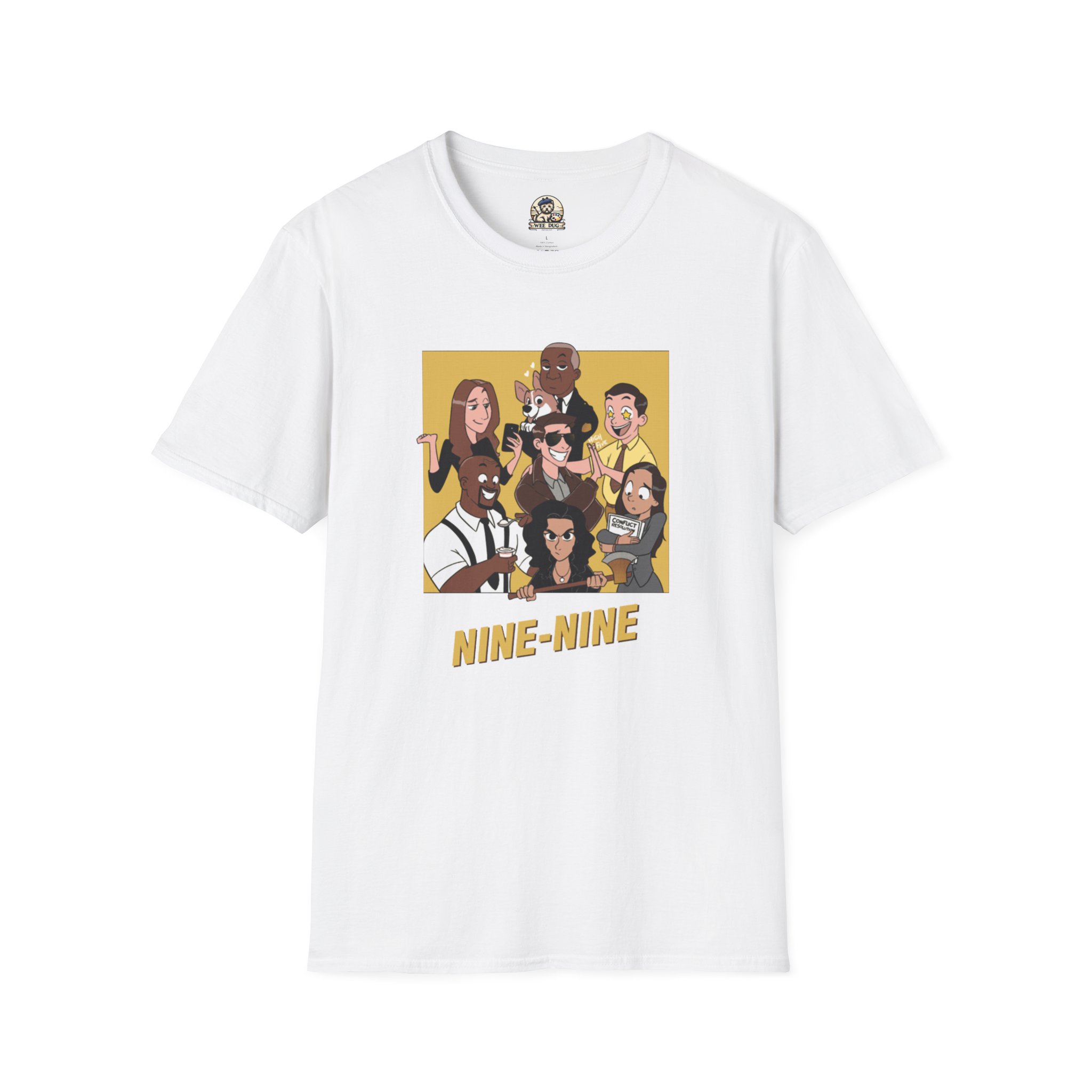 This lightweight cotton tee wears like an old favorite from the first pull-on. The front features a vibrant, character-driven illustration set against a warm ochre square with bold “NINE–NINE” lettering beneath — casual, playful, and instantly familiar. The crew neck and classic fit keep the silhouette clean so the artwork stays the focal point. Wear it on long stakeout nights, marathon-watch sessions, or when you want to share a knowing smile with fellow fans. Breathable, soft, and easy to layer, it lives in rotation for gigs, get-togethers, and laid-back days at home.